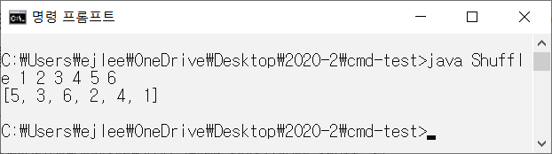 이것은 프로그램 매개변수를 받아 랜덤하게 섞은 리스트를 출력하는 프로그램이다. 프로그램 매개변수는 위의 명령줄 처럼 java 명령으로 실행할 때 뒤에 나열해준 것을 String[] 형태로 프로그램에게 전달해 주는 것이다. 이것은 main 함수가 받는 매개변수 args로 전달된다.