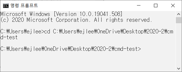 명령창에서 내가 원하는 디렉토리로 이동하기 위해 cd 명령을 사용하면 된다. 원하는 디렉토리는 탐색기에서 해당 디렉토리로 이동한 후 주소창을 클릭-복사하기 한 것을 명령창에 붙여넣기한다.