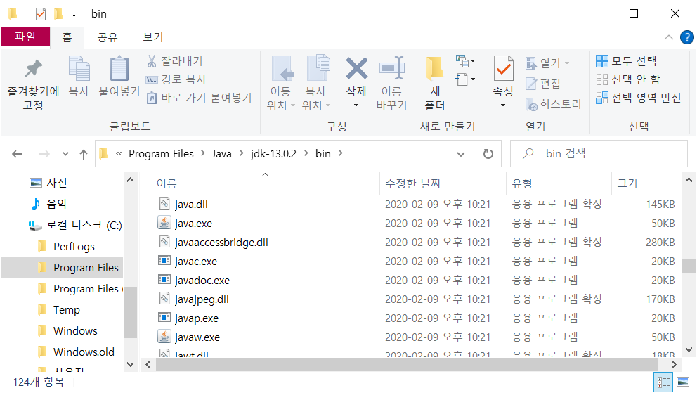 자바 컴파일러 javac 명령과 자바 실행을 위한 java 명령은 보통 다음 디렉토리에 설치되어 있는 경우가 많다.