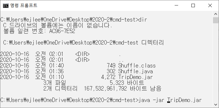 그럼 다음과 같이 명령창에서 "dir" 메뉴로 파일이 생겼음을 확인할 수 있다.