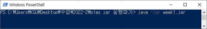 Runnable JAR 파일을 실행하기 위해서는 명령창에서 다음과 같은 명령을 주면 된다.