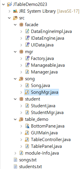 데이터 파일로부터 읽어들인 매니저에서 JTable을 이용하여 GUI 화면을 구성하는 프로그램을 재사용가능하게 구현해 보고자 한다.