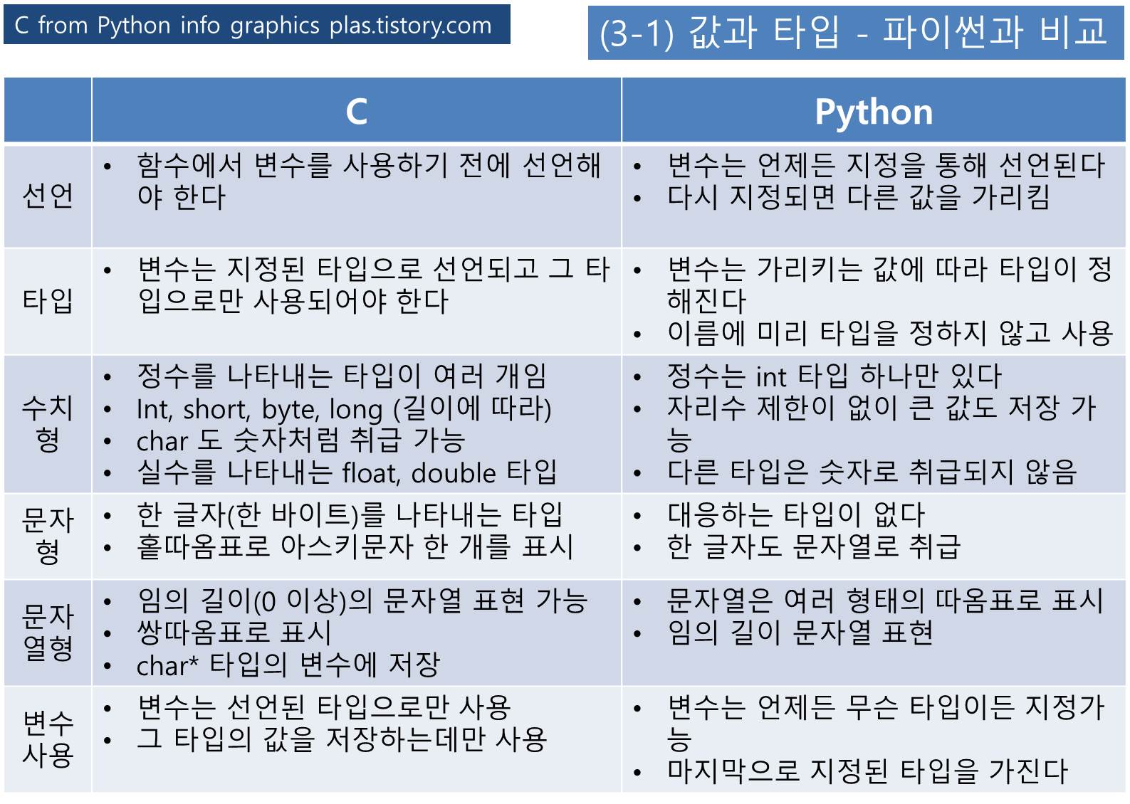 (3-1) 값과 타입을 파이썬과 비교해 봅시다.