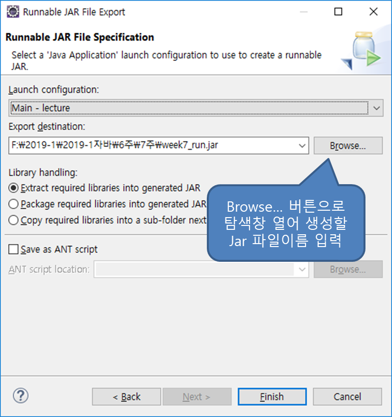 (4) 내보낼 Jar 파일의 위치와 파일명을 넣는다.